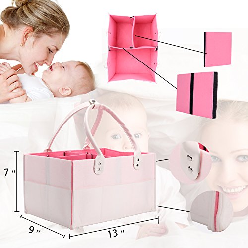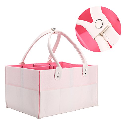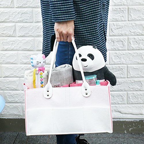 CamRomベビーおむつストッカー、マザーズバッグ ママバッグ トートバッグ、ベビーおもちゃおむつホームポータブル収納袋、赤ん坊おむつキャディーポータブルオーガナイザーストレージコンテナ、おむつ、子供おもちゃ、および赤ん坊のためのプレミアムストレージは拭く、ポータブルな車組織と子供部屋ストレージバッグ(ホワイト+ピンク)