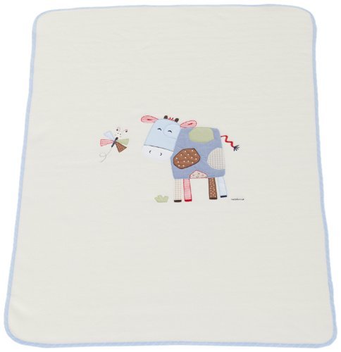 - Cambrass 75 x 110cm 100 Percent Cotton Cellular Blanket with Applique Designer Cow (Collection 74, White/ Blue)