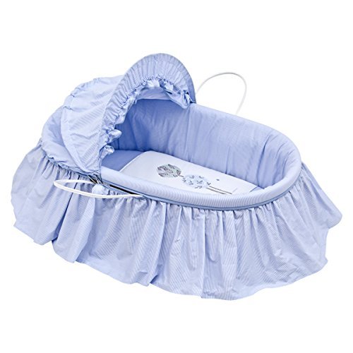 - Cambrass Moses Basket with Frills and Hood (47 x 84 cm, Une Gufo Blue)