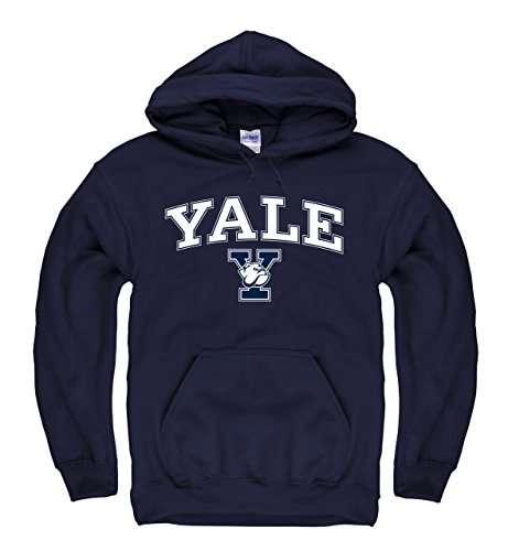 Yale Bulldogs大人用アーチとロゴフード付きスエットシャツ – 海軍 L