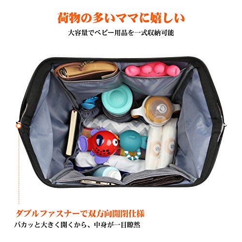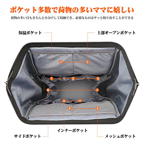 - 大容量と多様化分隔ポケット:大容量のマザーズバッグ:47*33*17cm、大きくぱかっと開くスクエアタイプ。多数なポケットには仕切りの設計を採用し、赤ちゃんのオムツや哺乳瓶、粉ミルク、服などが全部スッキリ入れます。実用的なママバッグ。