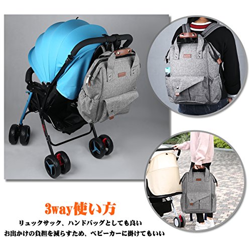- 3wayママバッグ:バッグはリュックサック、ハンドバッグとしても良い、それにベビーカーに掛けることができ、お出かけの負担を軽減。