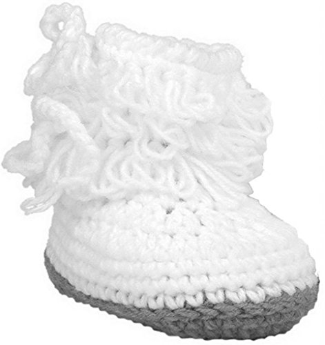 Candykids ベビーシューズ ベビー靴 ファーストシューズ ルームシューズ 毛糸 手作り風 赤ちゃん 新生児 子供 幼児 可愛い 出産祝い ベビー靴 子供靴 靴下 ファーストシューズ (ホワイト)