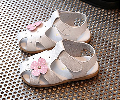 Candykids ベビー おしゃれ 靴 サンダル 夏 赤ちゃん キッズ 履き心地 柔らか マジックテープ 滑り止め 付き 可愛い 花 女の子 シューズ (内寸14.5cm, ホワイト)