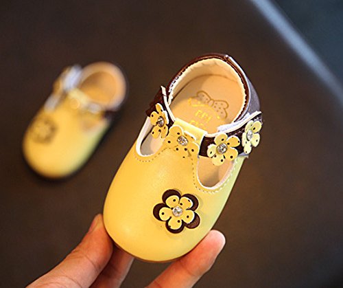 Candykids ベビー おしゃれ 靴 サンダル 夏 赤ちゃん キッズ 履き心地 柔らか マジックテープ 滑り止め 付き 可愛い 花 女の子 シューズ (内寸15.5cm, イエロー)