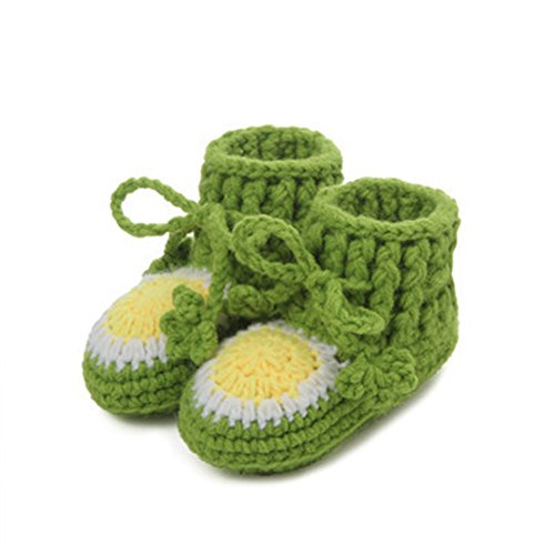 Candykids ベビー靴 子供靴 靴下 ファーストシューズ キッズ ルームシューズ あったか 室内 春秋 ニット毛糸編みの幼児防寒靴0-12か月の赤ちゃんに (11CM, グリーンA)