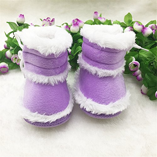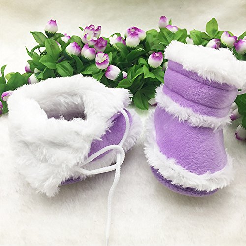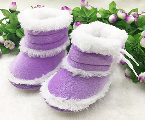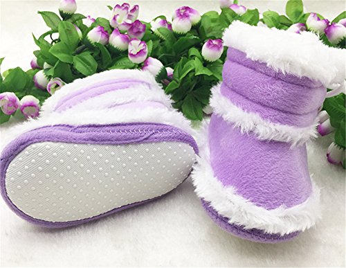 Candykids キッズ ベビー 暖か カジュアル ムートン ブーツ / 可愛い ボタン 付 つま先 ゆったり 履き口 ボア / 秋 冬 春 用 靴 ベビームートンブーツ 靴 (内寸12.5cm, パープル)