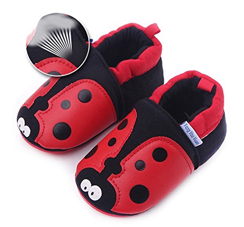 Candykids 子供 ベビーシューズ ベビー靴 ファーストシューズ ストライプ 滑り止め ベビー 赤ちゃん シューズ ニーカー 可愛いキッズ靴 子供用歩行靴 出産お祝い ベビープレゼント お誕生日プレゼント (13cm, 赤い虫)