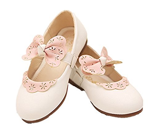 Candykids ガールズシューズ 女の子靴 子供フォーマル靴 七五三 発表会 結婚式 入学式 卒業式 子供フォーマルシューズ 韓国風 蝶結び 女児 ベビー フォーマル靴 結婚式 (内寸13.2cm, ホワイト)