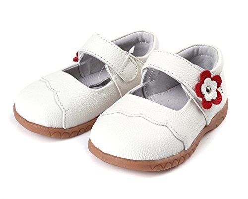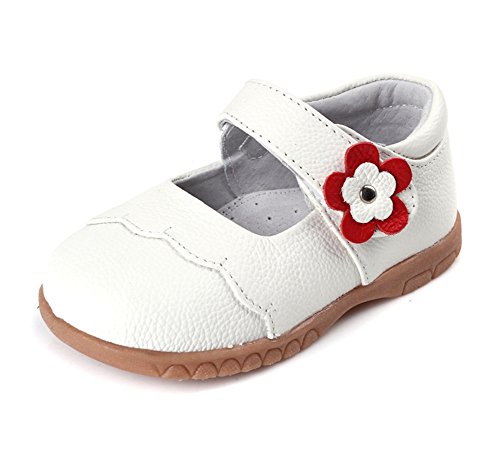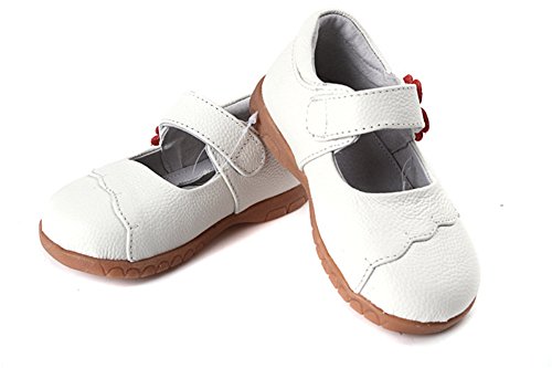 Candykidsプリンセス 子供 キッズ靴 フラットシューズ 女の子 ガールズ ベルクロシューズ レザー入園式 発表会 プレゼント 演奏会 花嫁介添人 フラワーガール (12.5cm, ホワイト)
