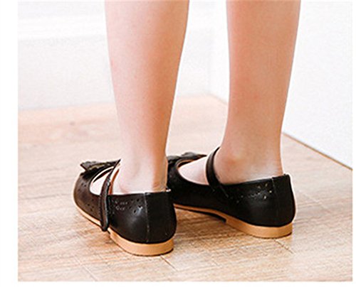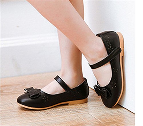 Candykids プリンセス風 子供 キッズ靴 フラットシューズ 女の子PUレザー製 ガールズ フラワー 女児 ベビー 赤ちゃん フォーマル 結婚式 可愛い 花 女の子 シューズ (内寸23cm, ブラック)
