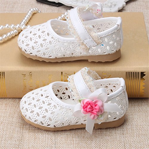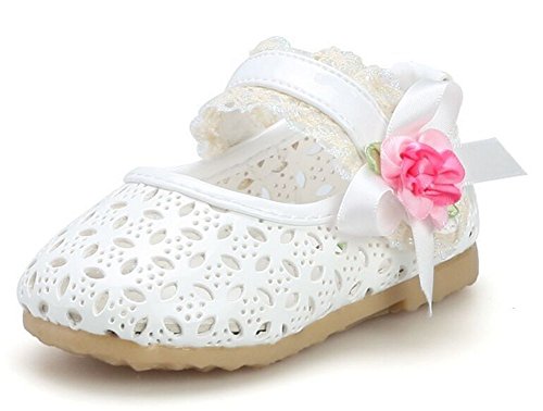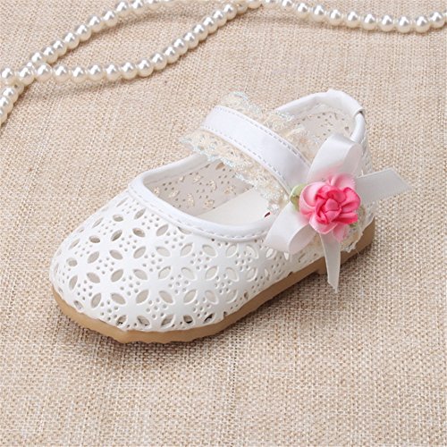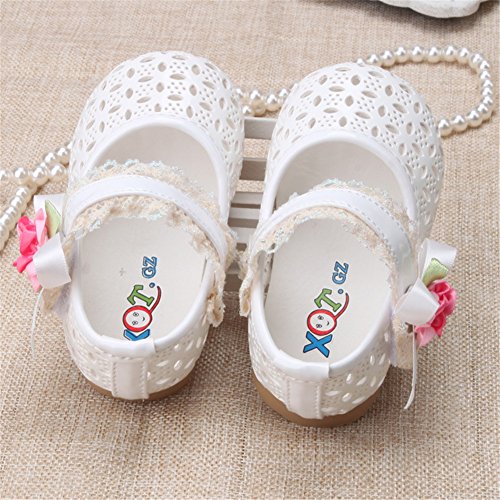 Candykids ベビー 夏 シューズ 赤ちゃん 可愛い プレゼント 軽量 履かせやすい マジックテープ ストラップ 花 新生児 フォーマル靴 (内寸12cm, ホワイト)
