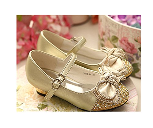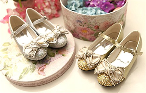 Candykids ガールズシューズ キッズフォーマルシューズ 女の子靴子供シューズ発表会 卒入園式 ドレス合わせシューズ 子供靴 蝶結び プリンセスシューズ (内寸20.6cm, ゴールド)