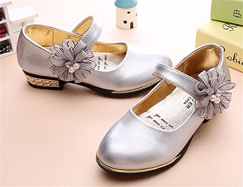 Candykids ガールズシューズ キッズフォーマルシューズ 女の子靴子供シューズ発表会 卒入園式 ドレス合わせシューズ 子供靴 蝶結び プリンセスシューズ (内寸22.1cm, シルバー)