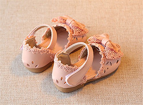 Candykids ベビー おしゃれ 靴 サンダル 夏 赤ちゃん キッズ 履き心地 柔らか マジックテープ  滑り止め 付き 可愛い 花 女の子 シューズ (内寸12cm, ピンク)