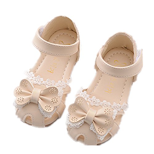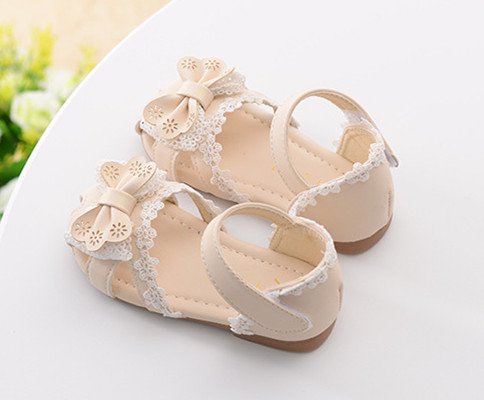 Candykidsベビー おしゃれ 靴 サンダル 夏 赤ちゃん キッズ 履き心地 柔らか マジックテープ  滑り止め 付き 可愛い 花 女の子 シューズ (内寸18.5cm, クリーム)