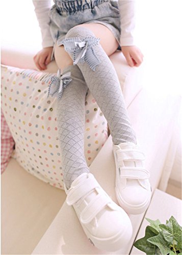 Candykids 子供レース ソックス リボン 靴下 こども 靴下通販 女の子 キッズ 靴下 フォーマルソックス 子供靴下 発表会 結婚式 通園 (グレー)