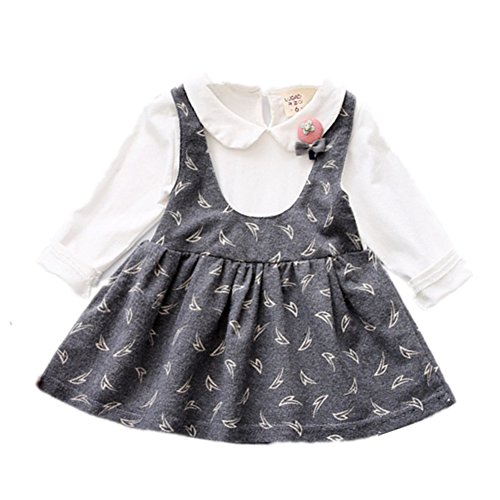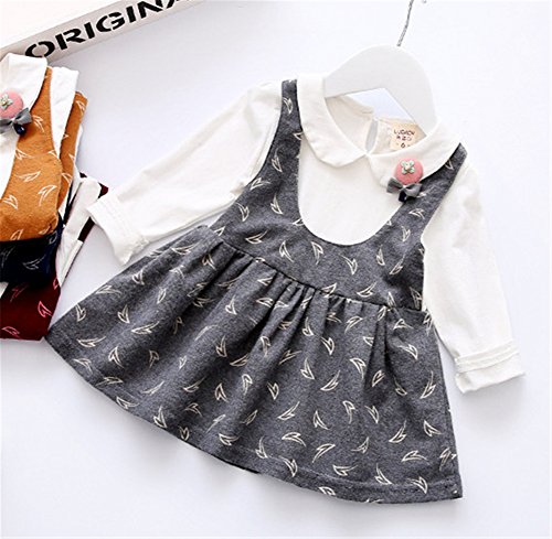 Candykids キッズ 女の子 女児 長袖 ワンピース フォーマル 丸襟 フレア スカート 発表会 結婚式 入学式 入園式 卒園式 卒業式 プリンセス お嬢様 キュート (80cm, グレー)