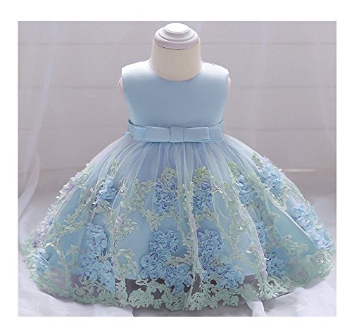 Candykids ベビードレス ベビーデイジー 結婚式 セレモニードレス フォーマルドレス 子供服 女の子 赤ちゃん お宮参り ティアードスカート ベビードレス フォーマルドレス (90cm, ブルー)
