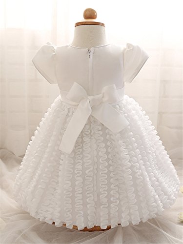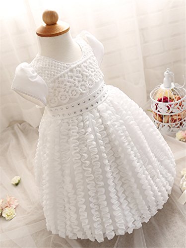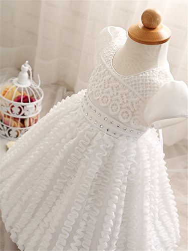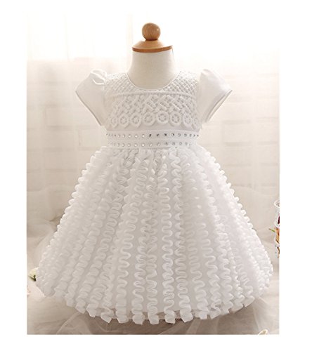 Candykids ベビードレス ベビーデイジー 結婚式 セレモニードレス フォーマルドレス 子供服 女の子 赤ちゃん お宮参り ティアードスカート (90cm, ホワイト)