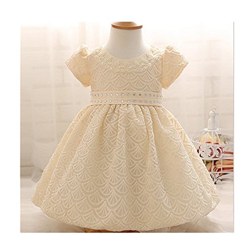 Candykids ベビードレス ベビーデイジー 結婚式 セレモニードレス フォーマルドレス 子供服 女の子 赤ちゃん お宮参り ティアードスカート ベビードレス フォーマルドレス (80cm, クリーム色)