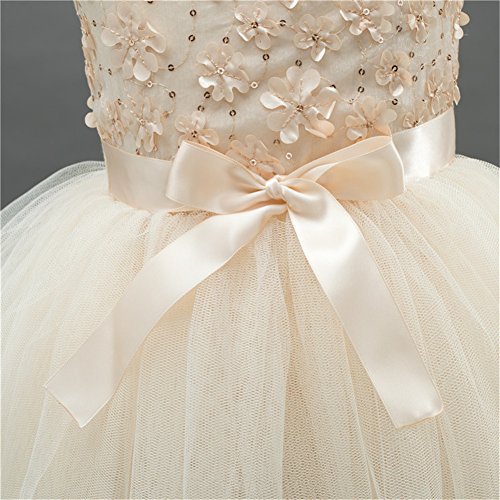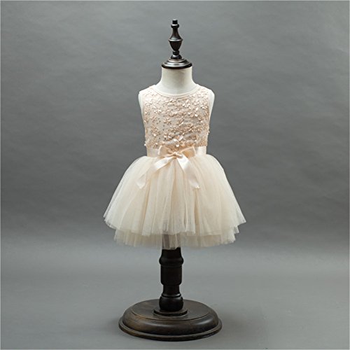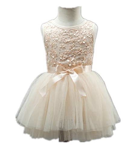Candykids ベビードレス ベビーデイジー 結婚式 セレモニードレス フォーマルドレス 子供服 女の子お宮参り ティアードスカート ベビードレス フォーマルドレス (80cm, クリーム色)