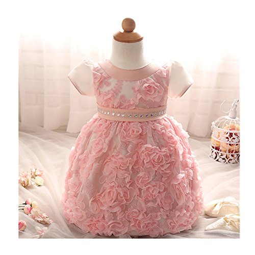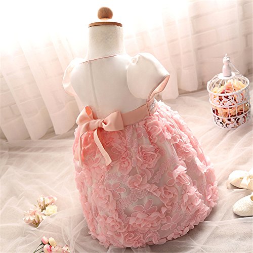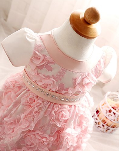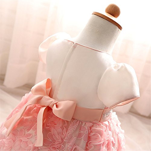Candykids ベビードレス ベビーデイジー 結婚式 セレモニードレス フォーマルドレス 子供服 女の子 赤ちゃん お宮参り ティアードスカート ベビードレス フォーマルドレス (90cm, ピンク)