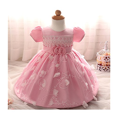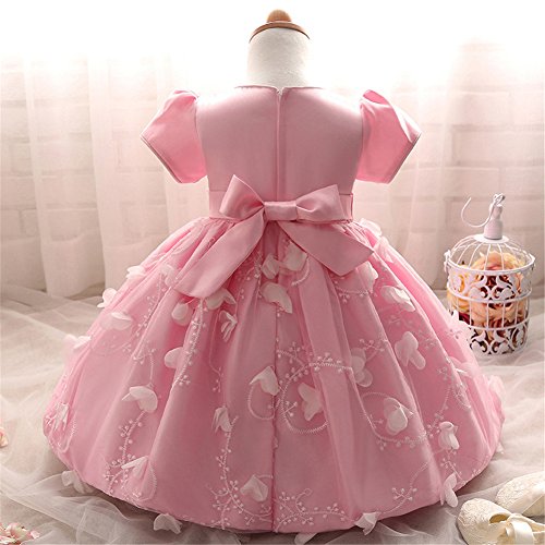 Candykids ベビードレス ベビーデイジー 結婚式 セレモニードレス フォーマルドレス 子供服 女の子 赤ちゃん お宮参り ティアードスカート ベビードレス フォーマルドレス (70cm, ピンク)