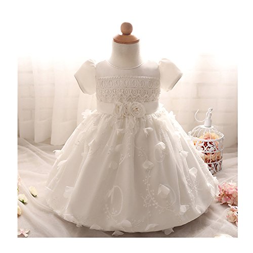 Candykids ベビードレス ベビーデイジー 結婚式 セレモニードレス フォーマルドレス 子供服 女の子 赤ちゃん お宮参り ティアードスカート ベビードレス フォーマルドレス (80cm, ホワイト)