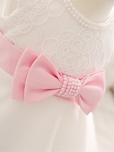 Candykids ベビードレス ベビーデイジー 結婚式 セレモニードレス フォーマルドレス 子供服 女の子 赤ちゃん お宮参り ティアードスカート ベビードレス フォーマルドレス (80cm, ピンク)