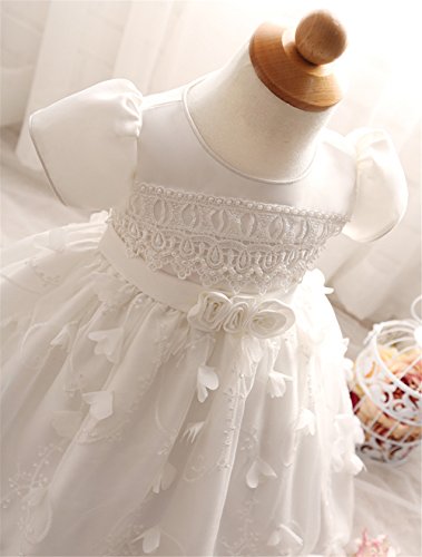 Candykids ベビードレス ベビーデイジー 結婚式 セレモニードレス フォーマルドレス 子供服 女の子 赤ちゃん お宮参り ティアードスカート ベビードレス フォーマルドレス (90cm, ホワイト)