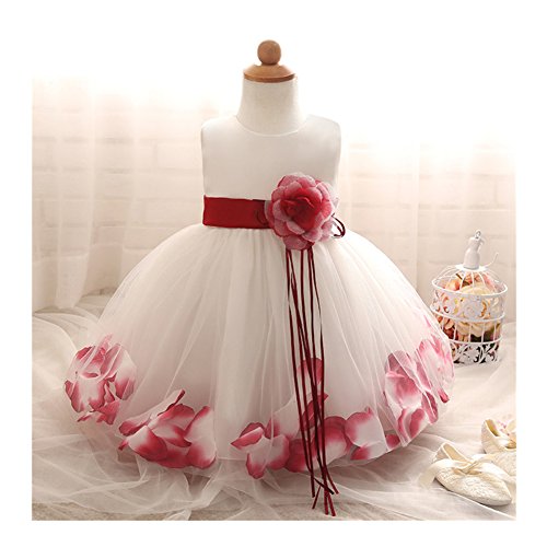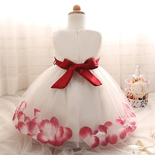 Candykids ベビードレス ベビーデイジー 結婚式 セレモニードレス フォーマルドレス 子供服 女の子 赤ちゃん お宮参り ティアードスカート ベビードレス フォーマルドレス (90cm, レッド)