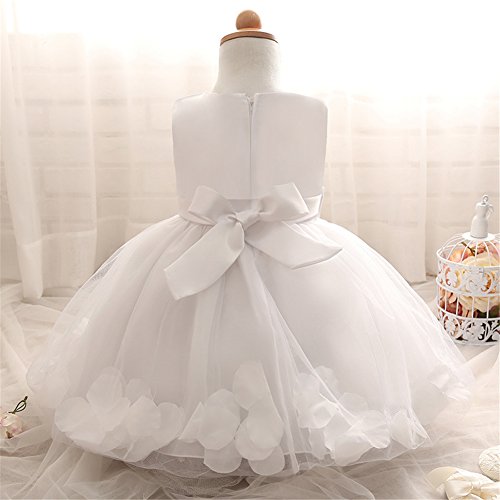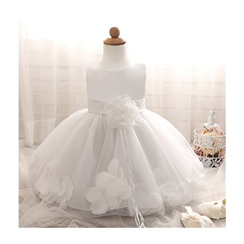 Candykids ベビードレス ベビーデイジー 結婚式 セレモニードレス フォーマルドレス 子供服 女の子 赤ちゃん お宮参り ティアードスカート ベビードレス フォーマルドレス (70cm, ホワイト)