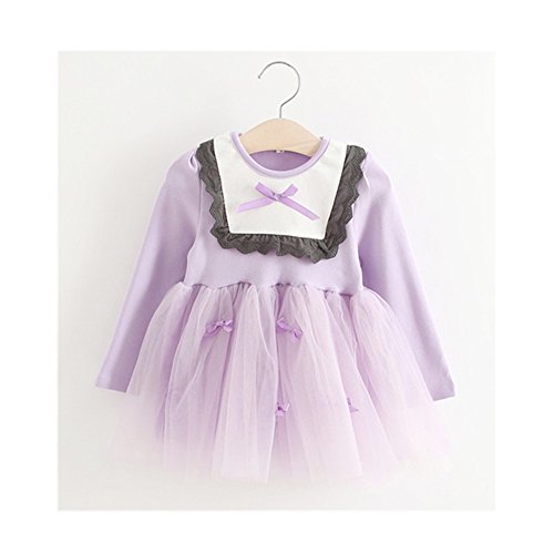 Candykids キッズワンピース フォーマル女児 キッズ 服 子供 長袖 女の子 ガールズ ワンピース 韓国スタイル 結婚式 発表会 入園式 入学式 卒園式 卒業式 七五三 パーティー (80cm, パープル)