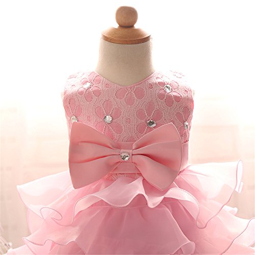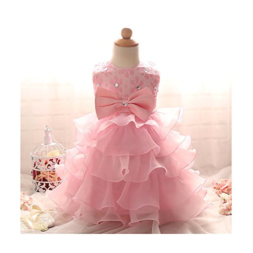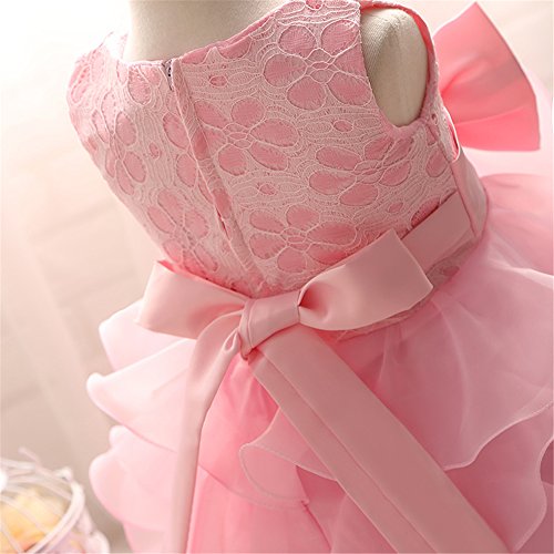 Candykids 供ドレス ベビードレス ベビーデイジー 赤ちゃん ティアードスカート ベビーセレモニー 子どもドレス ワンピース お嬢様 ウェディングドレス 女の子 フォーマルドレス (80cm, ピンク)