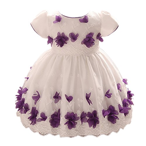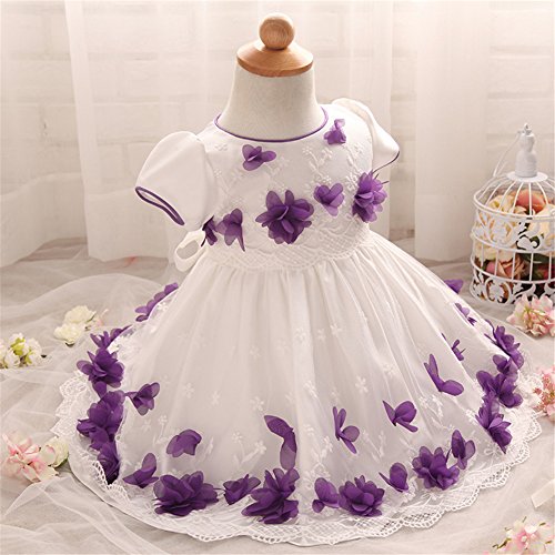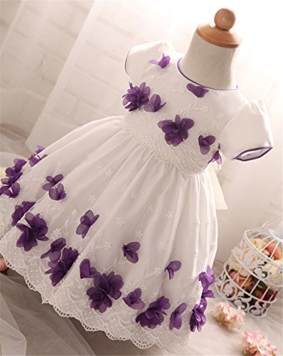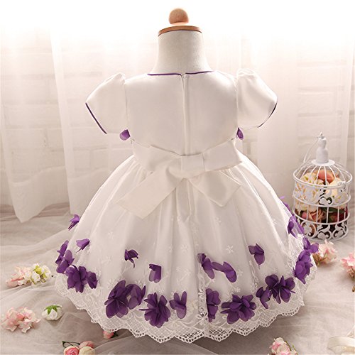 Candykids ベビードレス ベビーデイジー 結婚式 セレモニードレス フォーマルドレス 子供服 女の子 赤ちゃん お宮参り ティアードスカート ベビードレス フォーマルドレス (70cm, パープル)