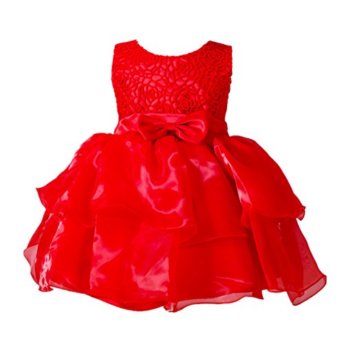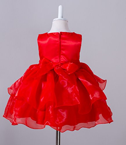 Candykids ベビードレス ベビーデイジー 結婚式 セレモニードレス フォーマルドレス 子供服 女の子 赤ちゃん お宮参り ティアードスカート ベビードレス フォーマルドレス (XL, レッド)