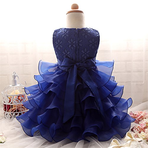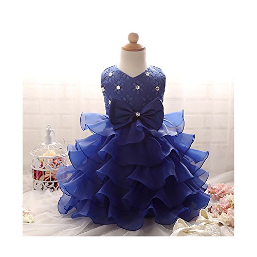 Candykids 供ドレス ベビードレス ベビーデイジー 赤ちゃん ティアードスカート ベビーセレモニー 子どもドレス ワンピース お嬢様 ウェディングドレス 女の子 フォーマルドレス (80cm, ブルー)