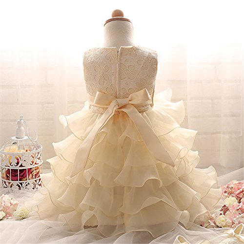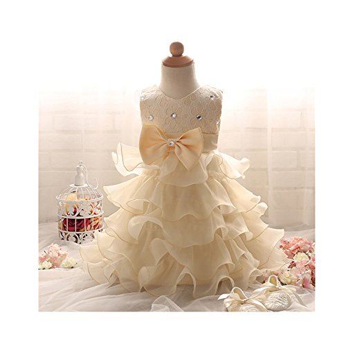 Candykids 供ドレス ベビードレス ベビーデイジー 赤ちゃん ティアードスカート ベビーセレモニー 子どもドレス ワンピース お嬢様 ウェディングドレス 女の子 フォーマルドレス (90cm, イエロー)
