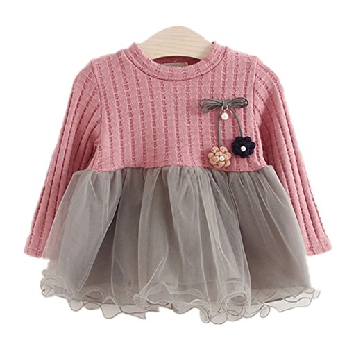 Candykids キッズワンピース フォーマル女児 キッズ 服 子供 長袖 女の子 ガールズ ワンピース 韓国スタイル 結婚式 発表会 入園式 入学式 卒園式 卒業式 七五三 パーティー (100cm, ピンク)