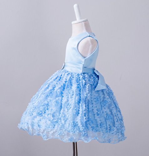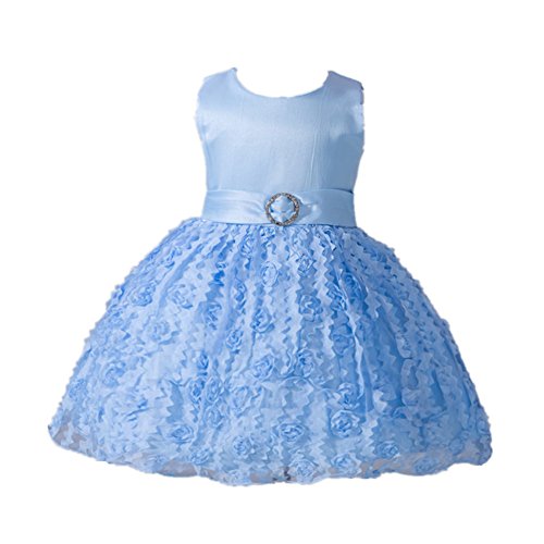 Candykids ベビードレス ベビーデイジー 結婚式 セレモニードレス フォーマルドレス 子供服 女の子 赤ちゃん お宮参り ティアードスカート (M, ブルー)