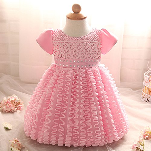 Candykids ベビードレス ベビーデイジー 結婚式 セレモニードレス フォーマルドレス 子供服 女の子 赤ちゃん お宮参り ティアードスカート (90cm, ピンク)