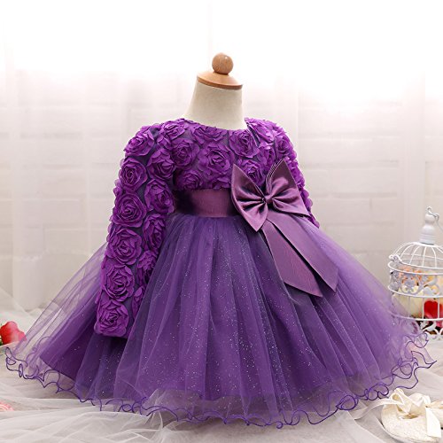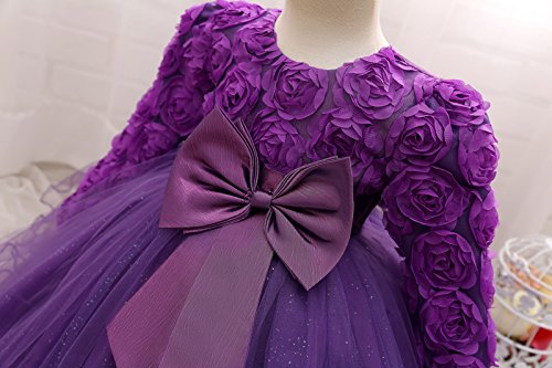 Candykids セレモニー レースドレス 子供ドレス キッズワンピース フォーマル女児 キッズ 服 子供 長袖 女の子 ガールズ ワンピース 結婚式 発表会 入園式 入学式 卒園式 卒業式 七五三 出産祝い 記念写真 (70cm, パープル)