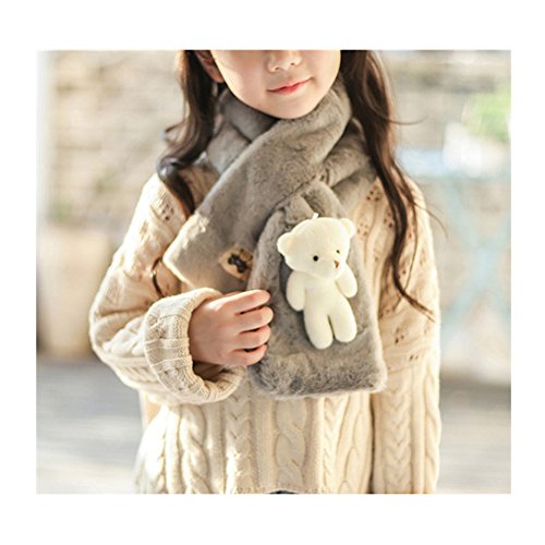 Candykids 可愛くてふわふわ キッズ用 マフラー 全6色  柔らかいキッズ ふわふわマフラー 純色厚手 秋冬 女の子ネックウォーマー 男女兼用 (グレー)