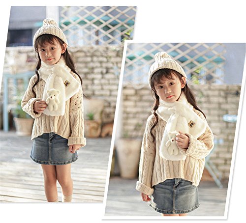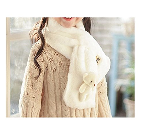 Candykids 可愛くてふわふわ キッズ用 マフラー 全6色  柔らかいキッズ ふわふわマフラー 純色厚手 秋冬 女の子ネックウォーマー 男女兼用 (ホワイト)