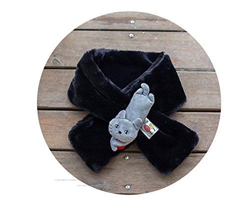Candykids 可愛くてふわふわ キッズ用 マフラー 全6色  柔らかいキッズ ふわふわマフラー 純色厚手 秋冬 女の子ネックウォーマー 男女兼用 (ブラック2)