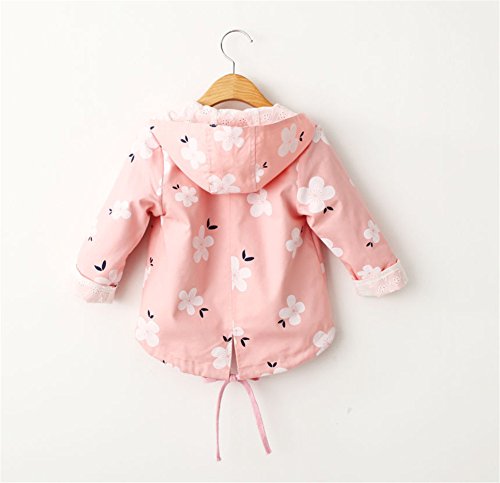 Candykids 花柄 ウインド ブレーカー フード ジャケット カッパ レイン コート 長袖 女の子 子供服 スプリングコート キッズコート 子供服 子供コート キッズ服 女の子服 (140cm, ピンク)