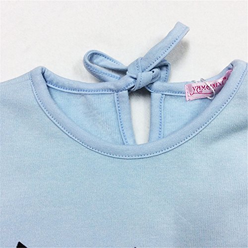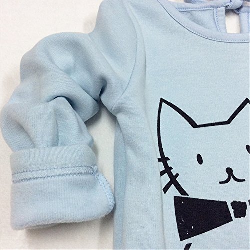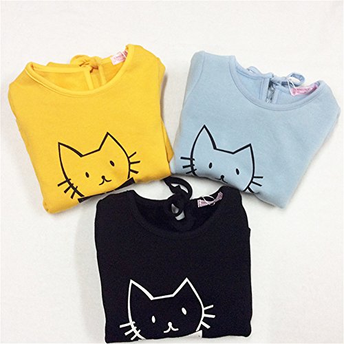 Candykids 女の子 子供 キッズ 用 カットソー 長袖 T シャツ / 猫  長袖 カットソー 女の子 子供服  可愛い猫顔プリント 子供服 女の子服 秋冬服 韓国スタイル (140cm, ブルー)