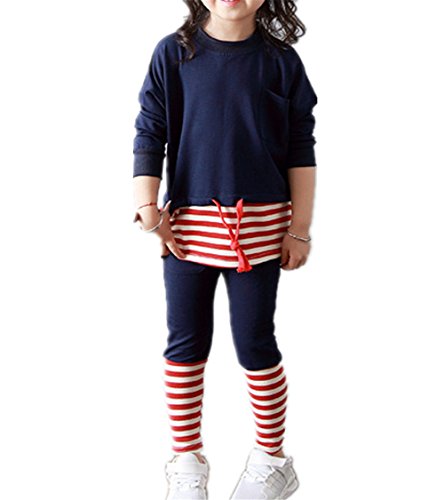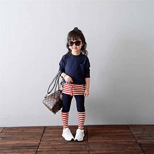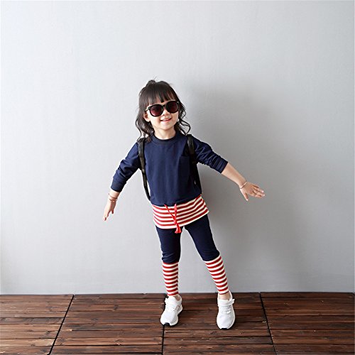 Candykids 上下セットアップ 韓国風 子供服 女の子 ガールズ 長袖 カットソー ロングパンツ 2点セット ベビー服 子供服 女児 ガールズ 女の子 (110cm)