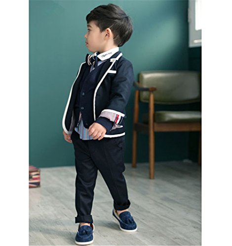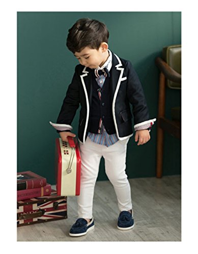 Candykids 男の子 スーツ キッズスーツ 子供スーツ キッズ 子ども服 子供ジャケット 紳士風 七五三 入園式 卒園式 結婚式 入学式 卒業式 (130cm, ネイビー)
